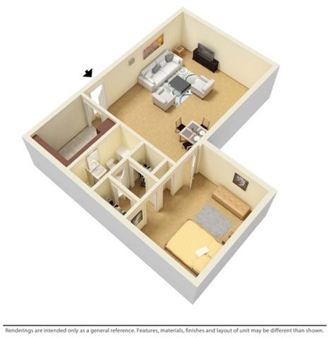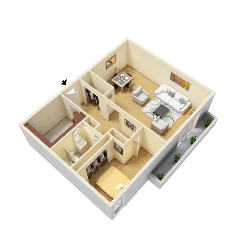 Apartment Model: 1 Bed 1 Bath JuniorFrom $6551 Bedroom, 1 Bath, 523 sq ftAvailable Now![]()