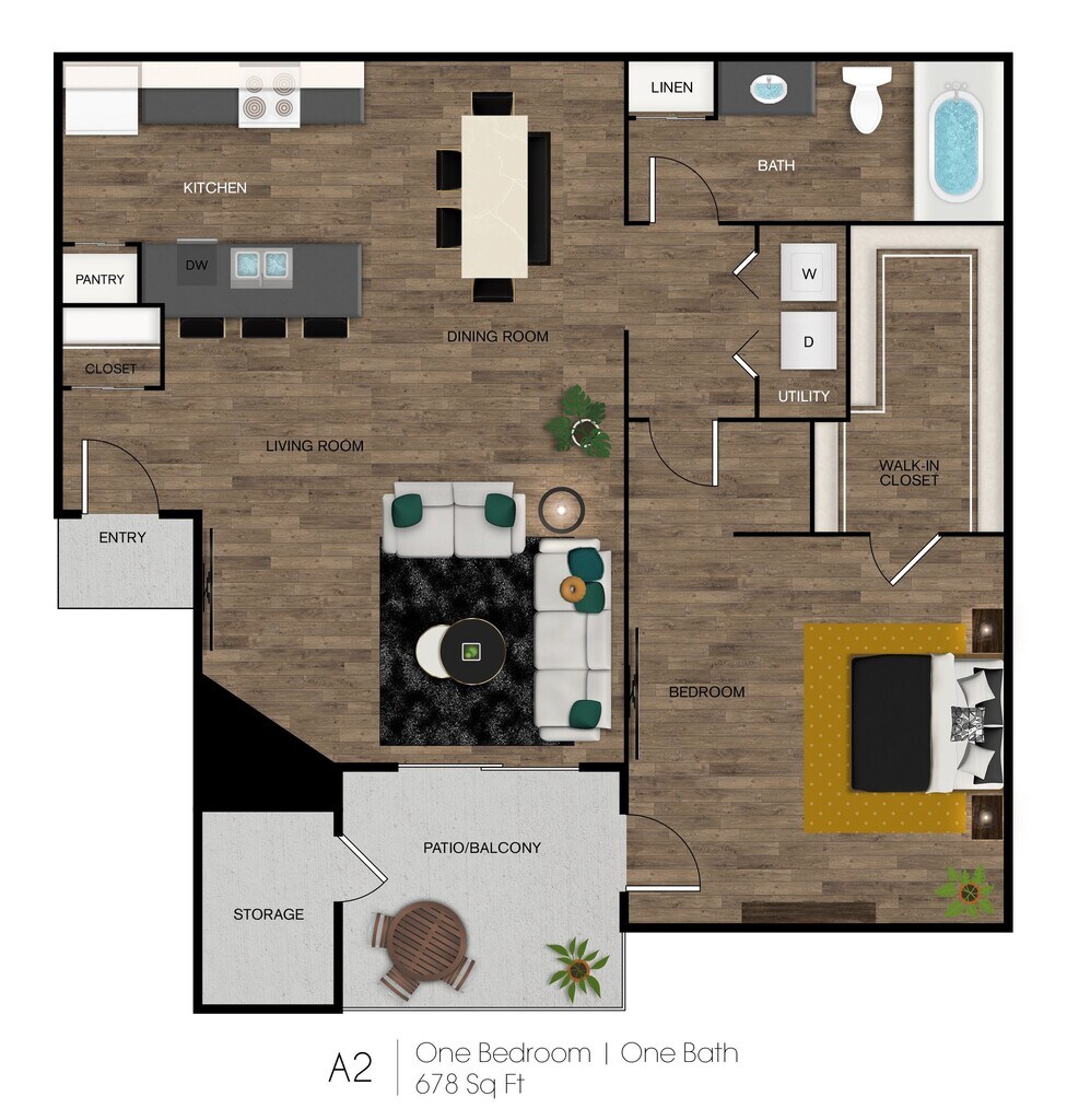 1 Bed, 1 Bath, 678 sq ftAvailable NowModel Gallery
