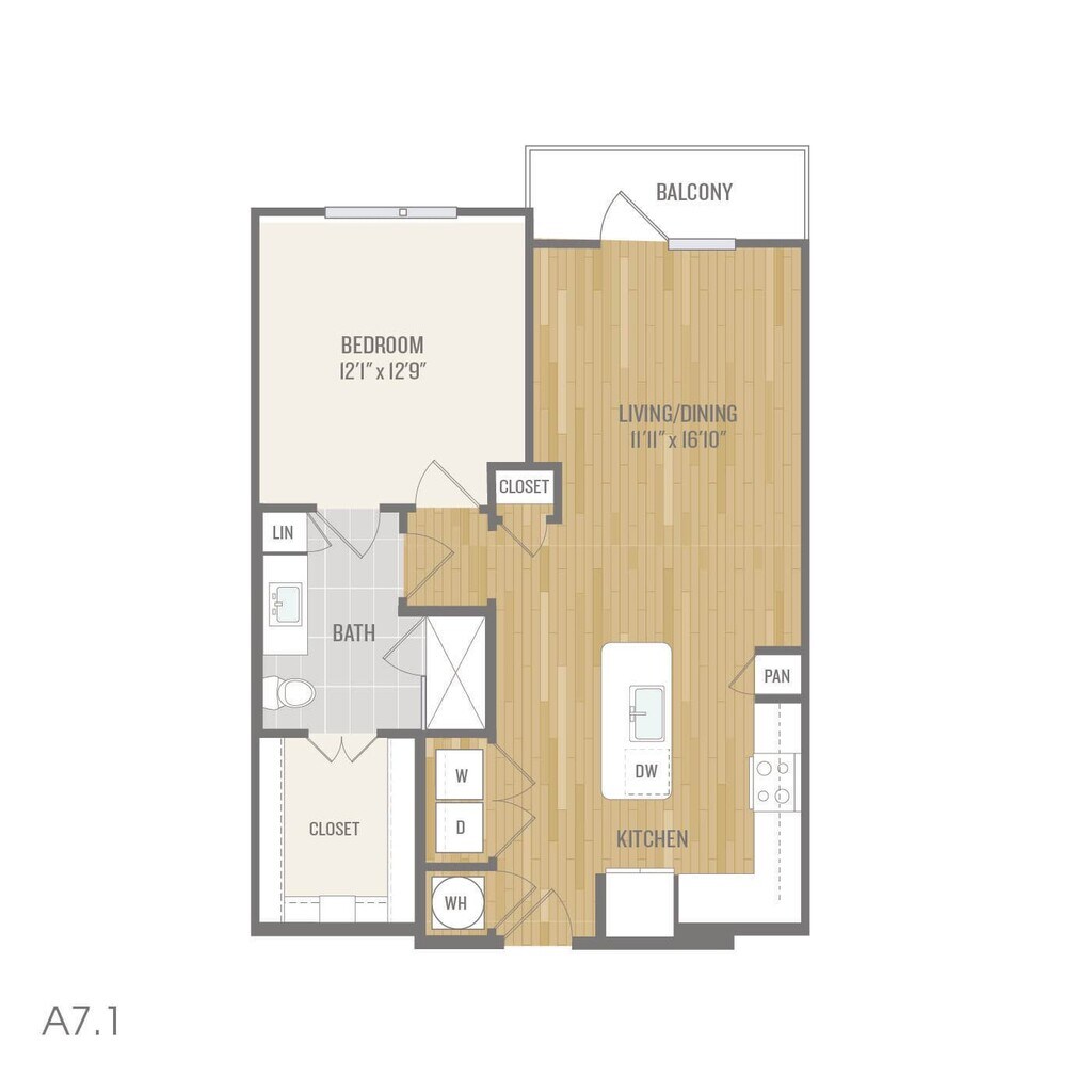 A1 - Floorplan 1 Apartment Unit: 1056Apartment Model: A1$1,3351 Bedroom, 1 Bath, 668 sq ftAvailable NowA7.2