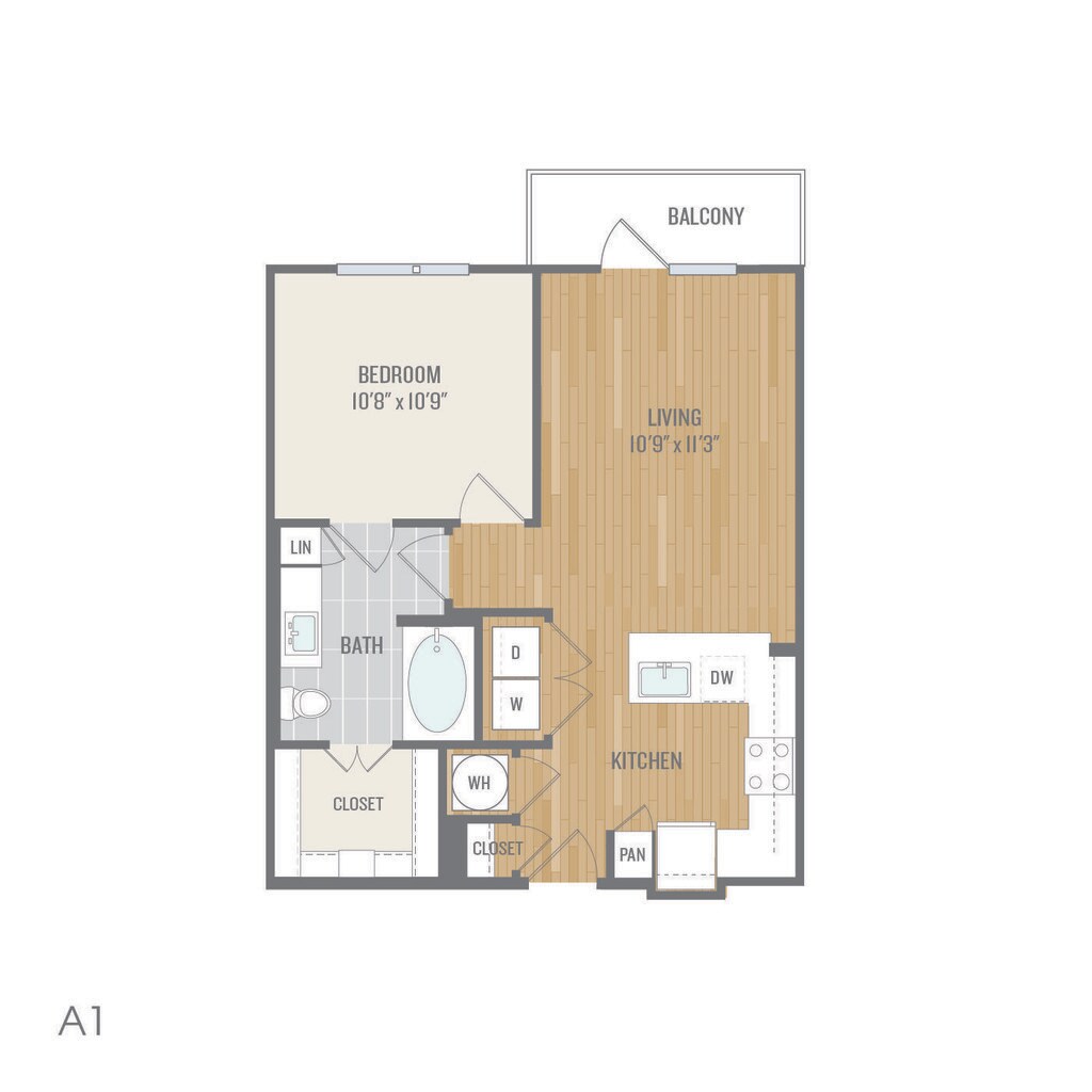 Apartment Model: A1$1,3351 Bedroom, 1 Bath, 668 sq ftAvailable Now![]()