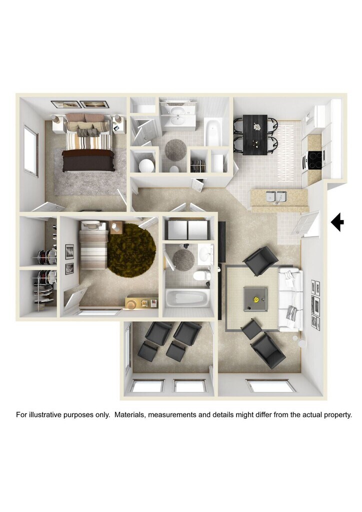 Apartment Model: Two BedroomFrom $1,3772 Bedroom, 2 Bath, 1035 sq ftAvailable Now![]()
