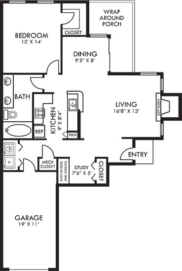 Applebrook with Attached Garage - Floorplan 3 Apartment Unit: 412101Apartment Model: Applebrook with Attached Garage$1,4291 Bedroom, 1 Bath, 945 sq ftAvailable December 6, 2025Belwood with Fenced-In Yard