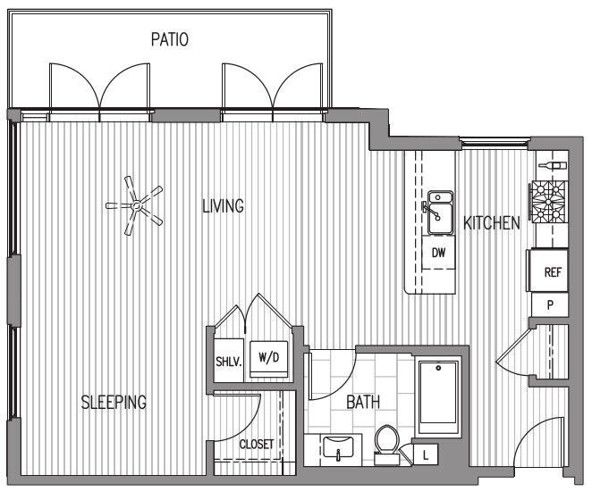 S1 - Floorplan 1 Apartment Unit: 418Apartment Model: S1$2,571Studio, 1 Bath, 561 sq ftAvailable NowFloorplan S5