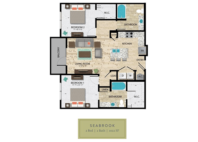 2 Beds, 2 Baths, 1022 sq ftAvailable NowModel Gallery