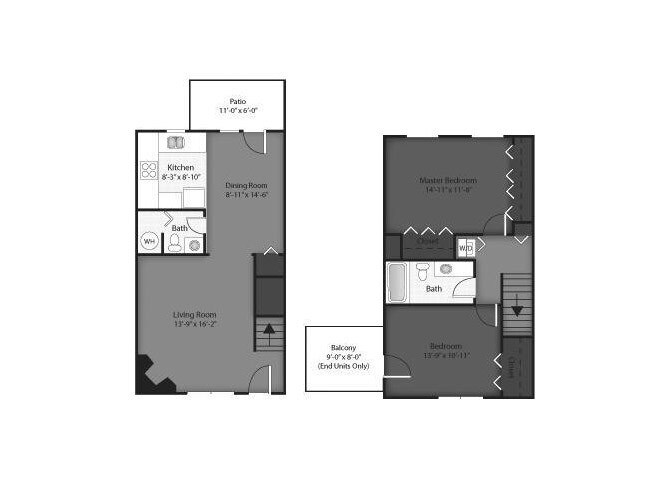 2 Beds, 1.5 Baths, 1100 sq ftLargest 2 BedroomThis is the largest 2 Bedroom at this PropertyModel Gallery