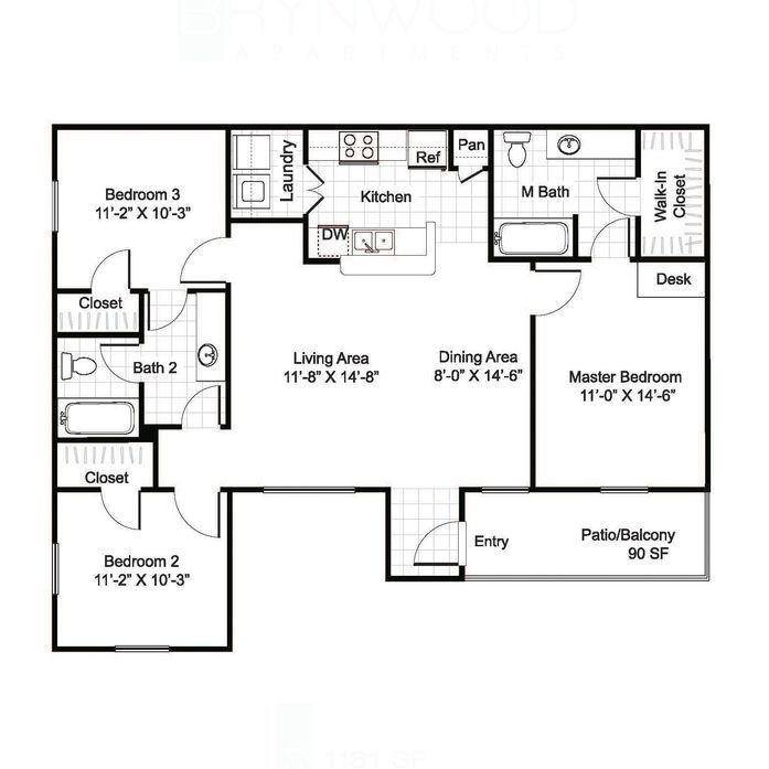 Brynwood Apartments offers 1 to 3 Bedroom apartments starting from $949 and having 587–1,181 sq ft. Here is the current pricing and availability: