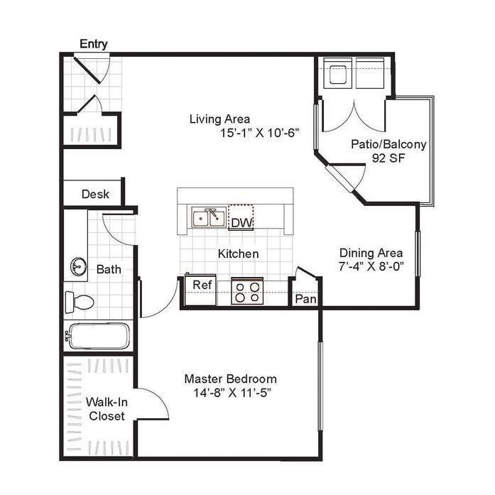1 Bed, 1 Bath, 587 sq ftAvailable NowModel Gallery