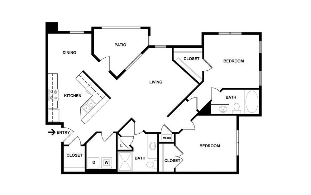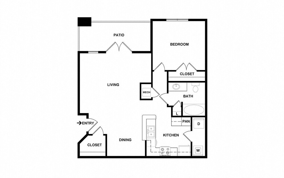 1 Bed, 1 Bath, 785-805 sq ftAvailable NowLargest 1 BedroomThis is the largest 1 Bedroom at this PropertyModel Gallery