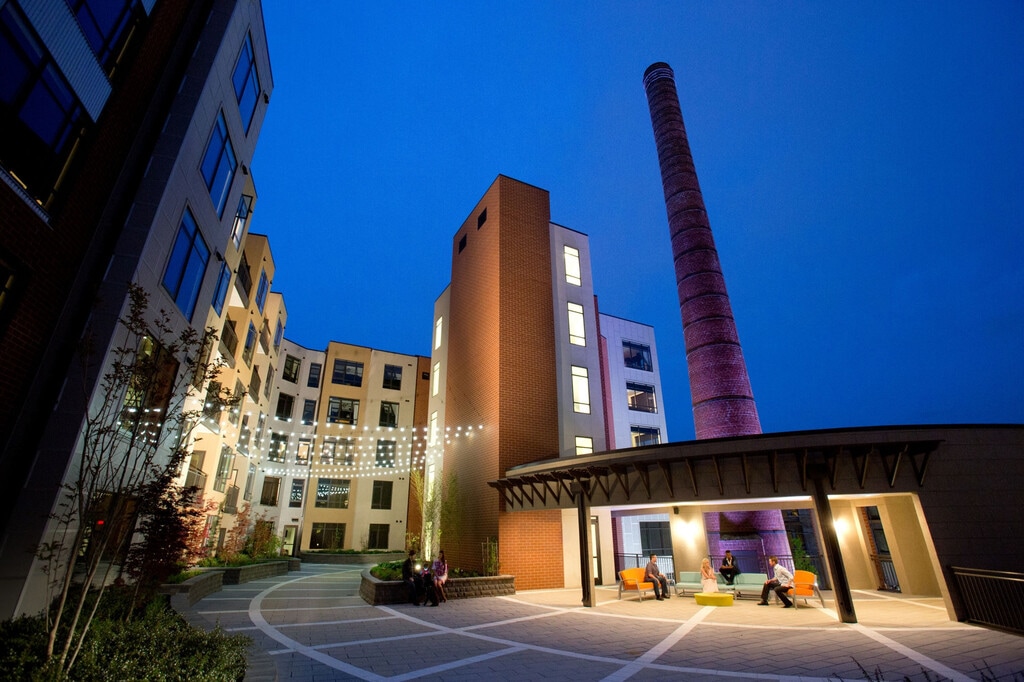 The neighborhood of Rolling Mill Hill is a locally designated landmark. At the heart of it is the hospital buildings and trolley barns. The first hospital structure, a Victorian-style building, dating back to the 1894, has been converted for residential use, along with a 1930s art-deco style building. The trolley barns, which recently have been entered on the National Register of Historic Places, are being converted to office and commercial space. The historic smokestack, which is visible from several points downtown has been preserved and will continue to serve as a landmark and icon for the area.