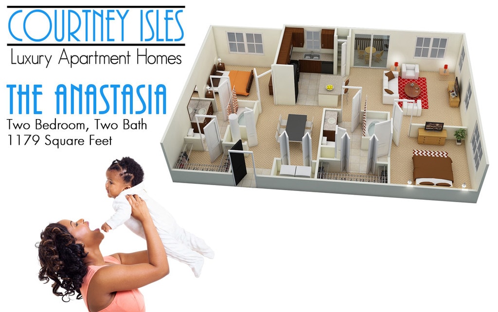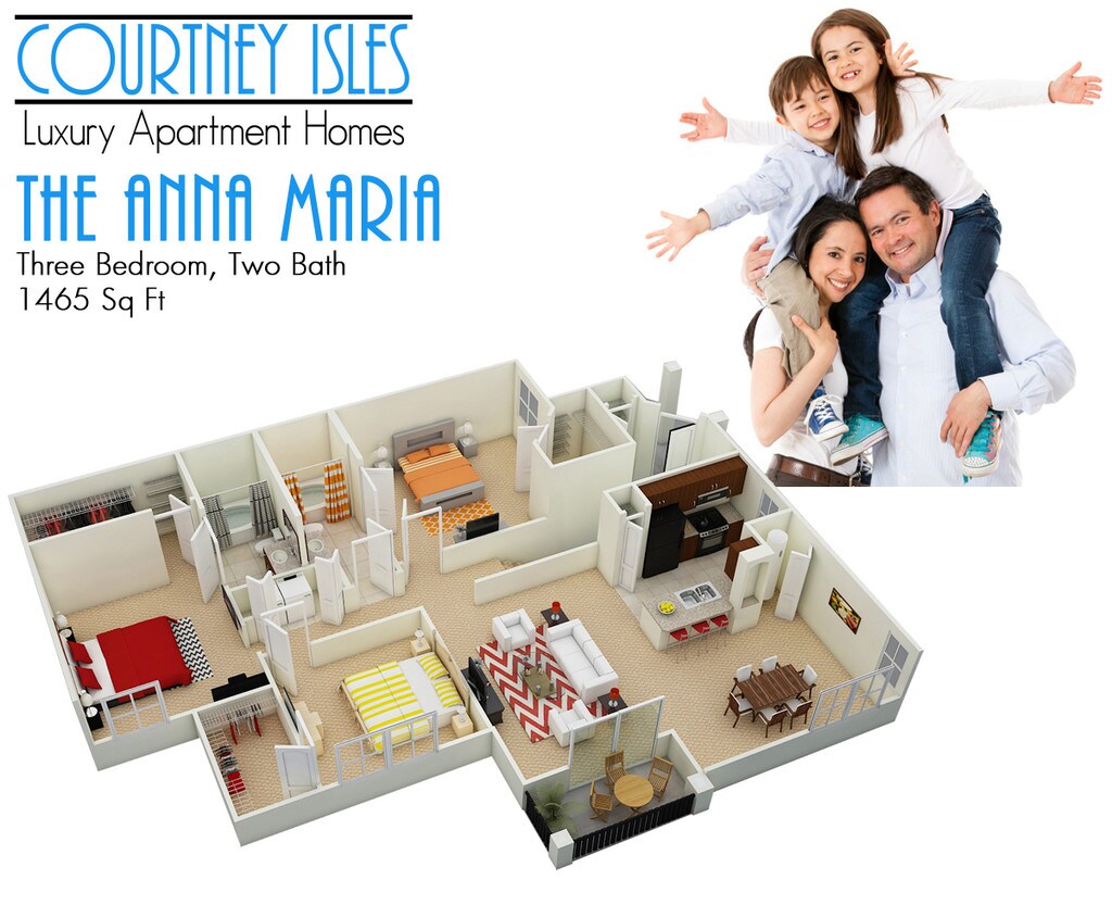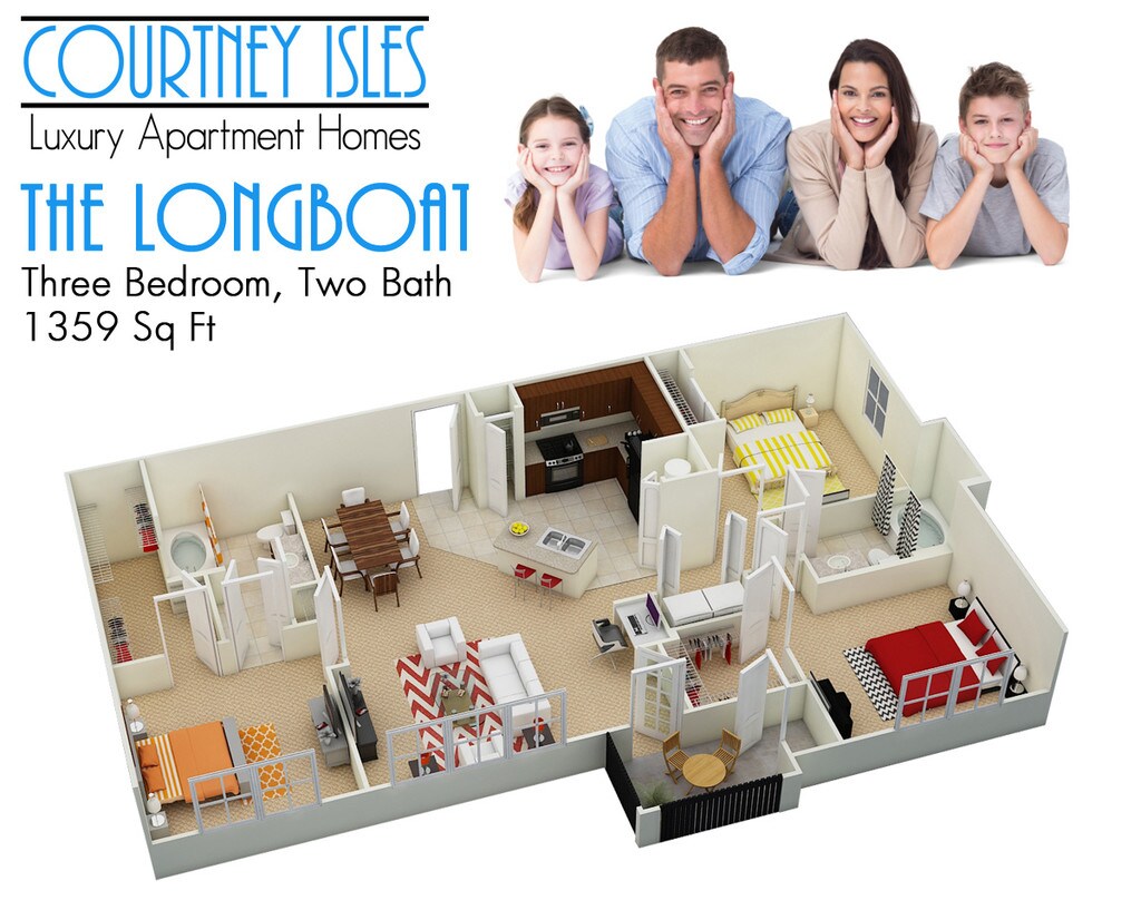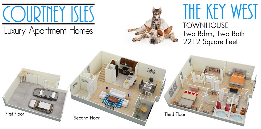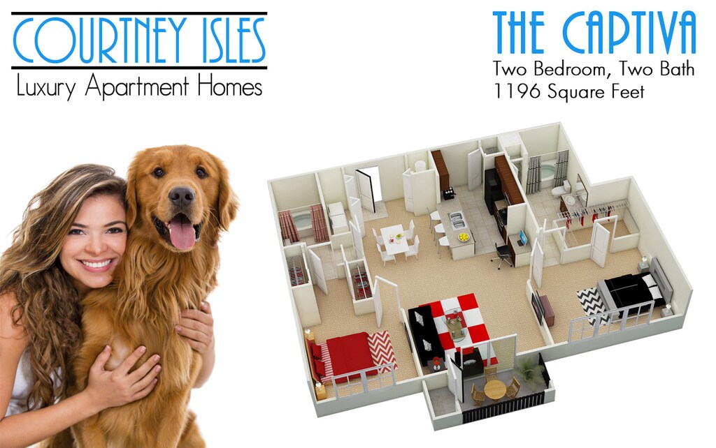 1 Bedroom to 3 Bedroom Apartments at Courtney Isles currently range from $1,499 to $2,074
