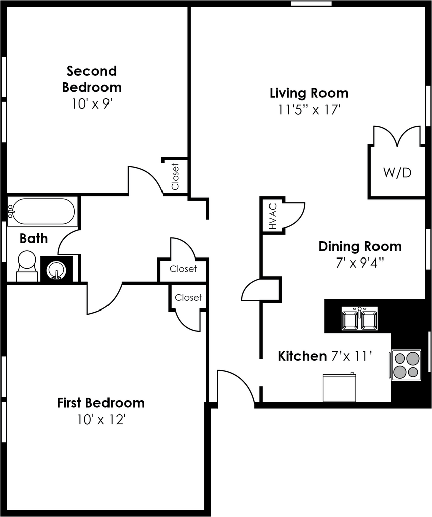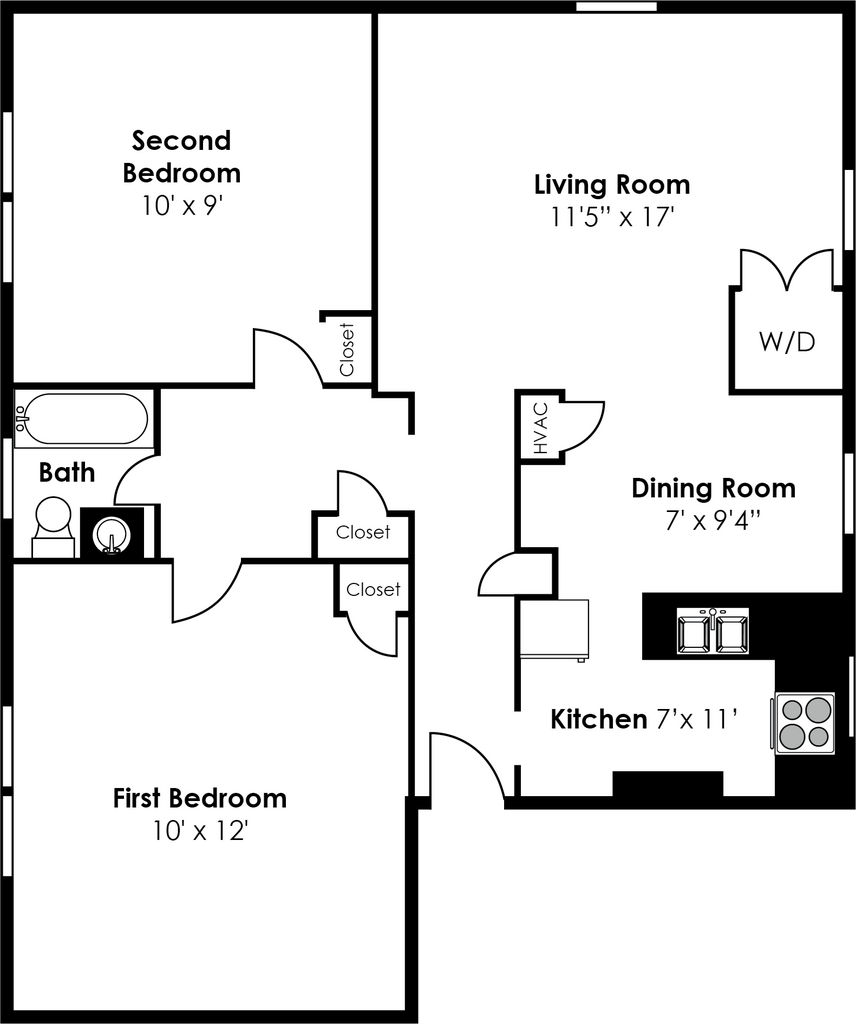1 Bedroom 1 Bath - Floorplan 2 2 Bedrooms