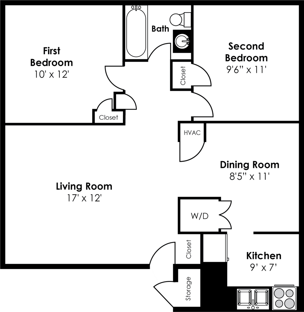 Show Unavailable Floorplans2 Bedroom 1 Bath 2A