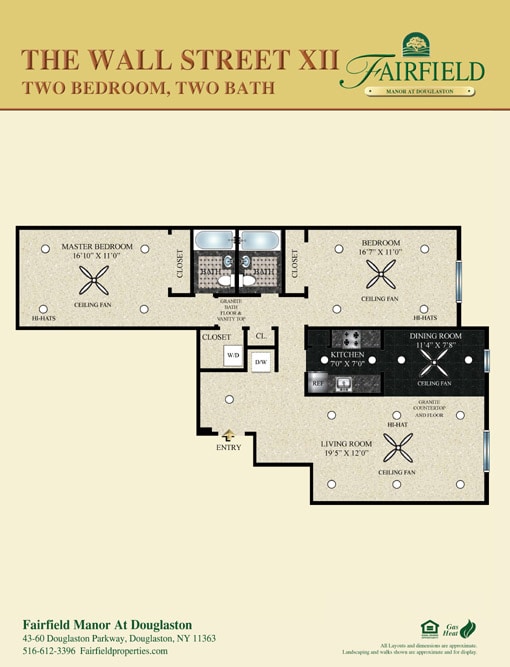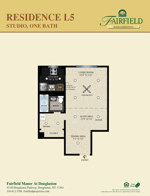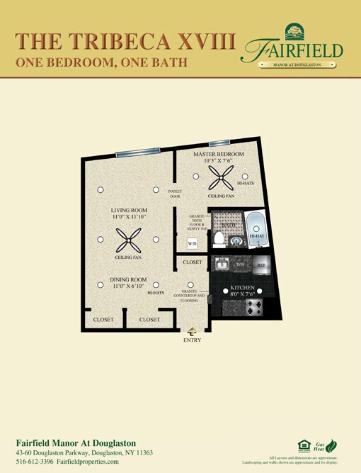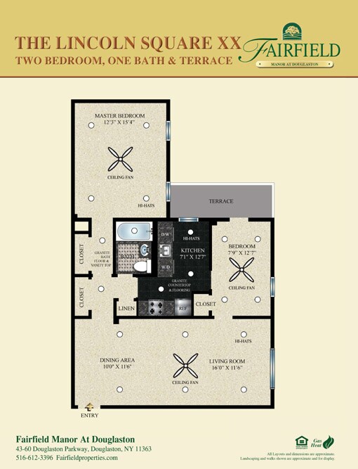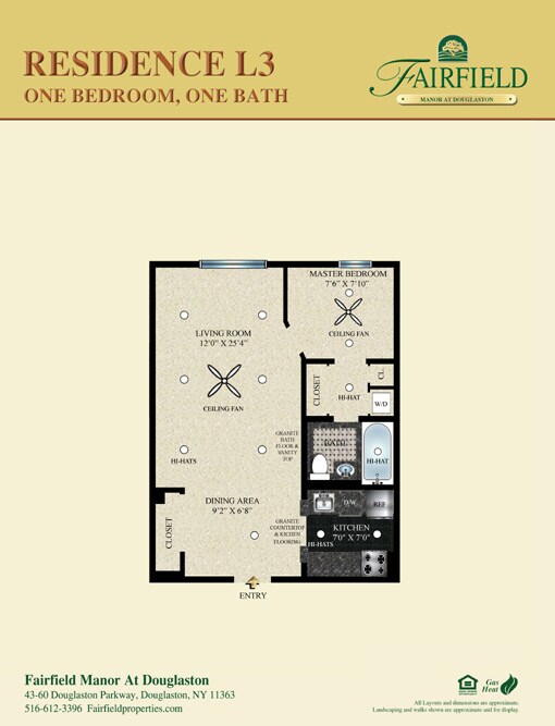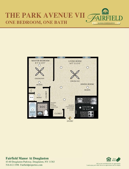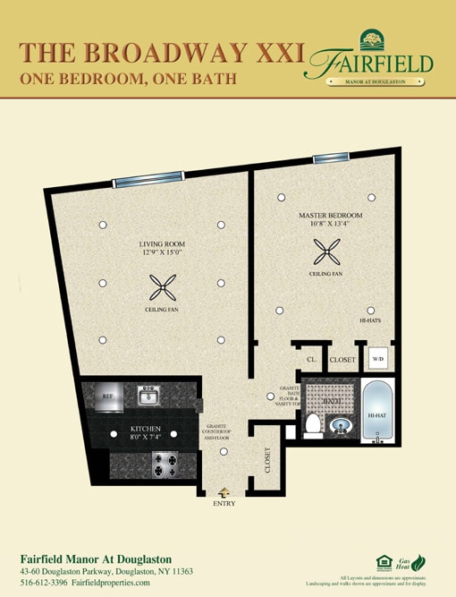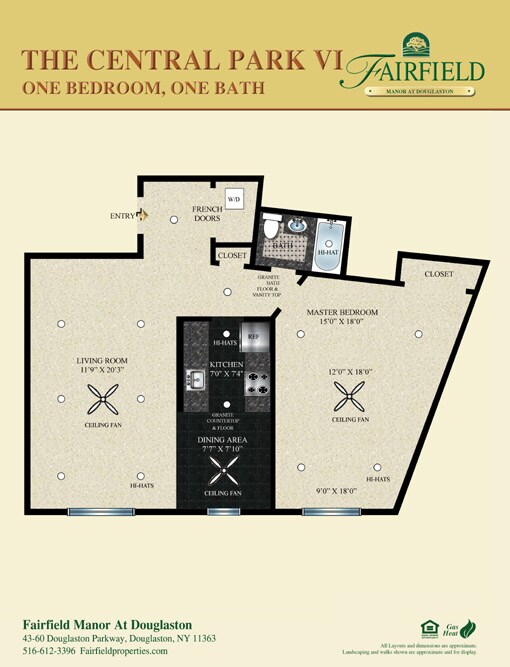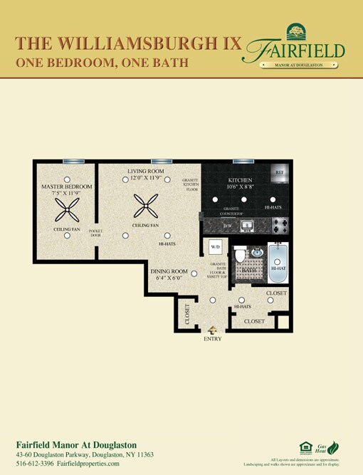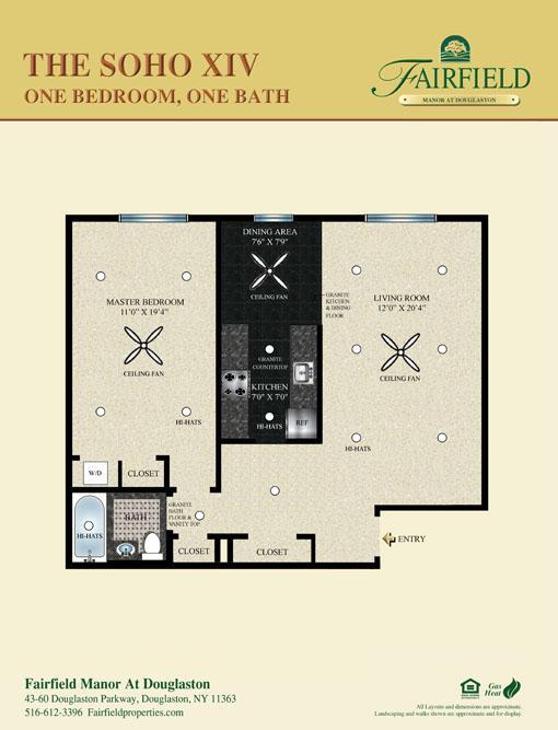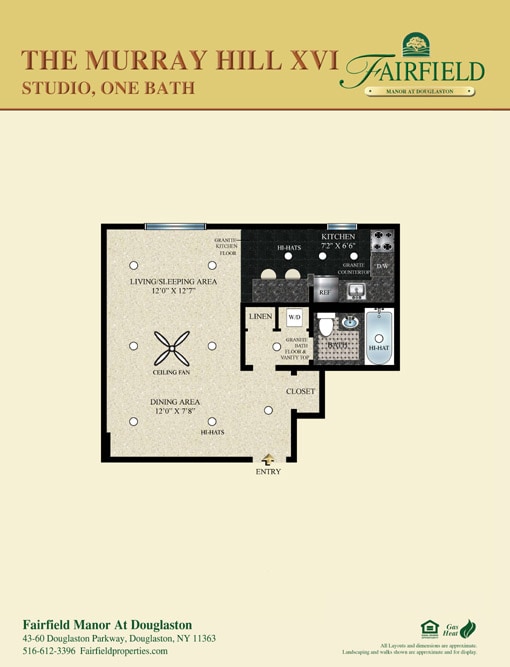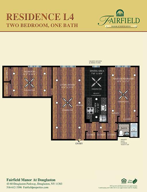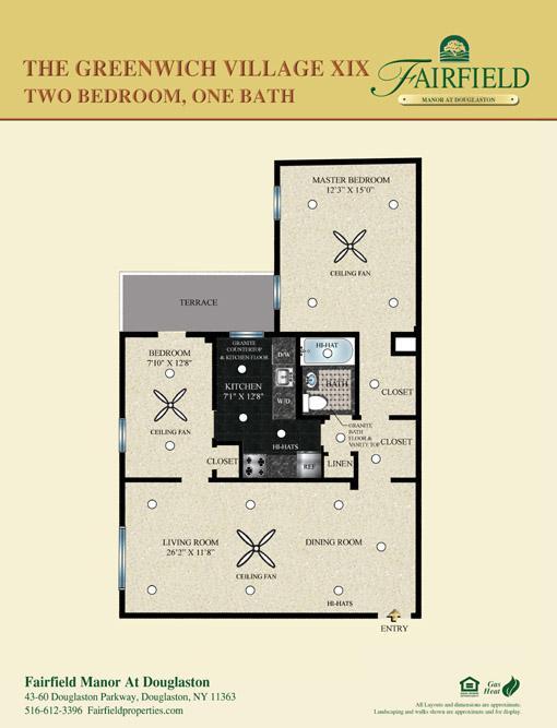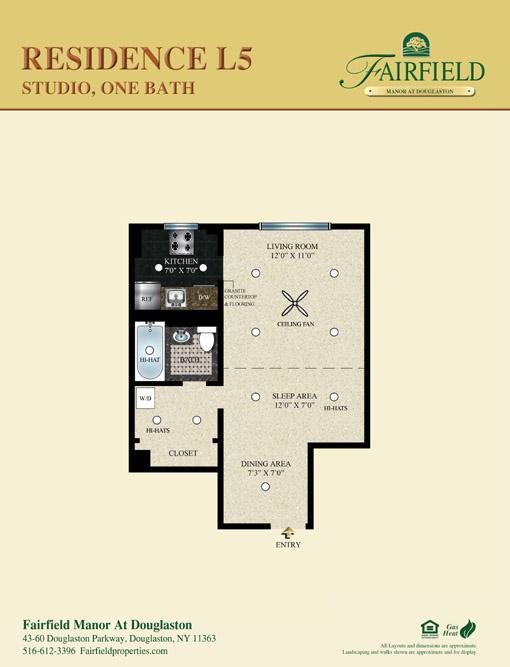 Fairfield Manor At Douglaston. A Fairfield Properties a five-star Manhattan style high-rise at Douglaston. Queens, New York. Lobby with intercom, elevator. 20 minutes to NYC.Luxurious -studio, -1 bedroom, -2 bedroom residences. Granite kitchen and bath. Granite countertops, backsplash, flooring. Cherry cabinets, undermount lighting, Stainless steel appliances, hardwood floors, gray paint, AC, high-hat lights, ceiling fans, window treatments, stackable non-vented washer/dryer.