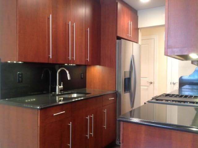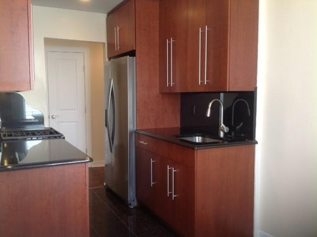 - Modern Cherry Kitchen Cabinets with Brushed Nickel