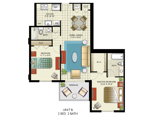Apartment Model: Model BFrom $2,1881 Bedroom, 1 Bath, 800 sq ftAvailable Now![]()