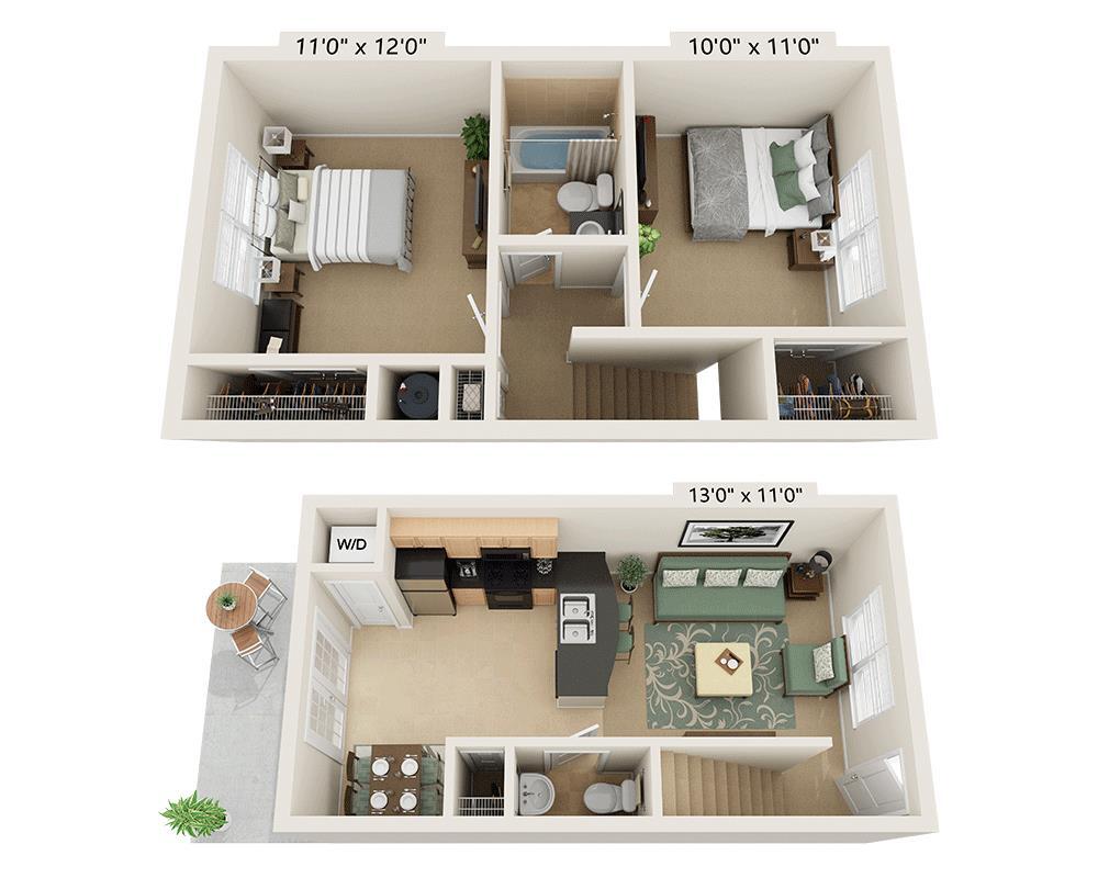 2 Beds, 2.5 Baths, 1074 sq ftAvailable NowModel Gallery