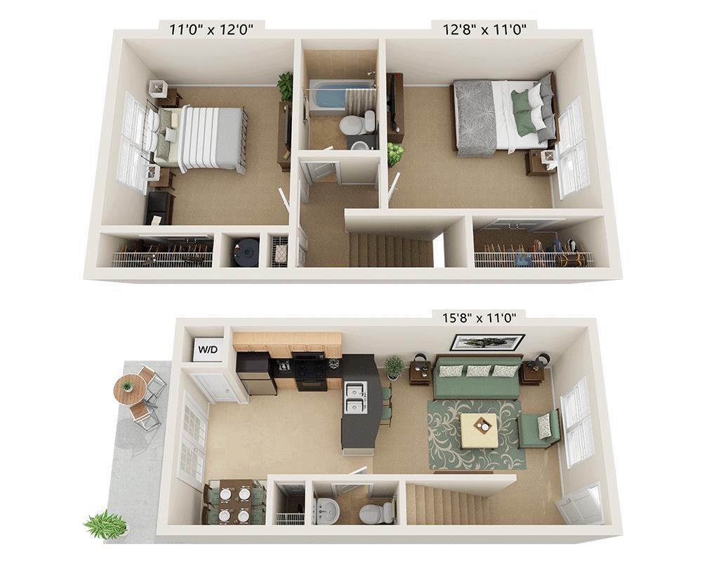 2 Beds, 1.5 Baths, 780 sq ftAvailable NowCheapest 2 BedroomThis is the cheapest 2 Bedroom at this PropertyModel Gallery