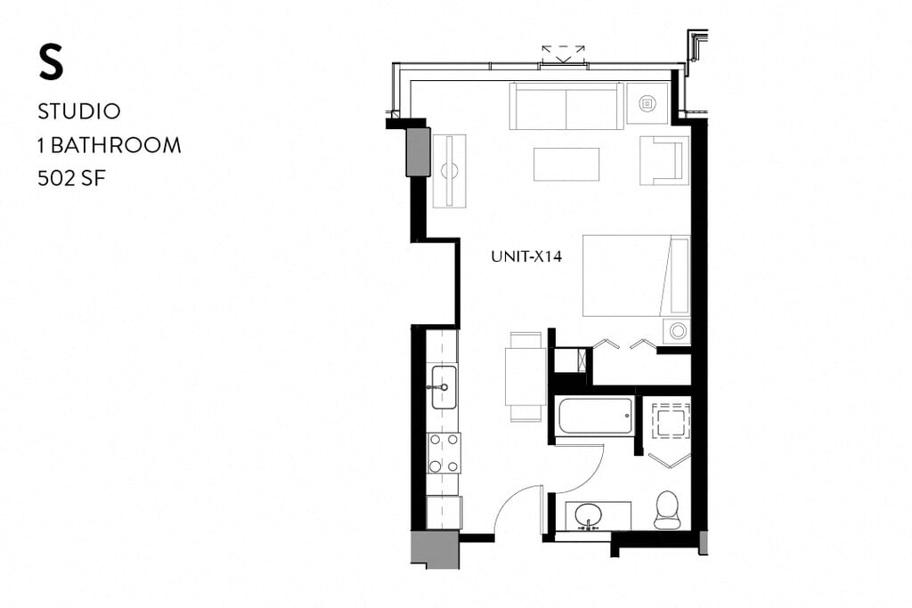 Studio, 1 Bath, 501-502 sq ftAvailable NowModel Gallery