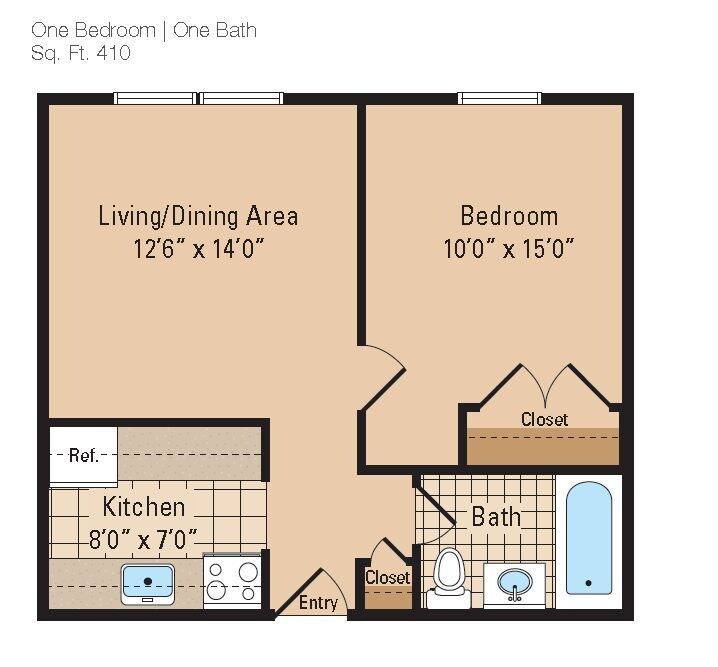 1 Bed, 1 Bath, 410-510 sq ftModel Gallery