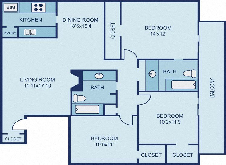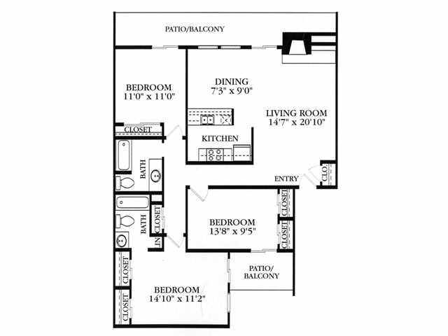 Apartment Model: A3T$1,1491 Bedroom, 1.5 Bath, 868 sq ftAvailable Now![]()