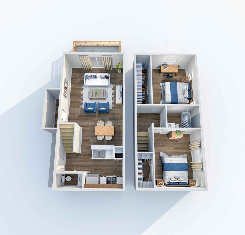 2 Beds, 2 Baths, 942 sq ftModel Gallery