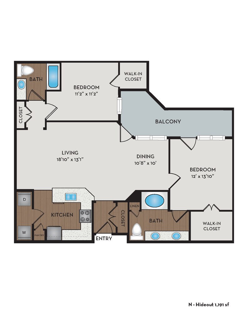 1 Bed, 1 Bath, 713 sq ftAvailable NowModel Gallery