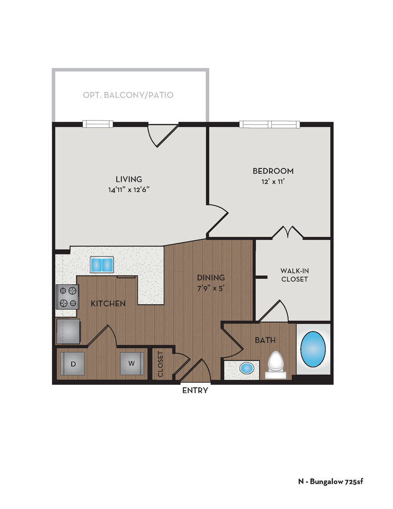 1 Bed, 1 Bath, 725 sq ftAvailable NowModel Gallery