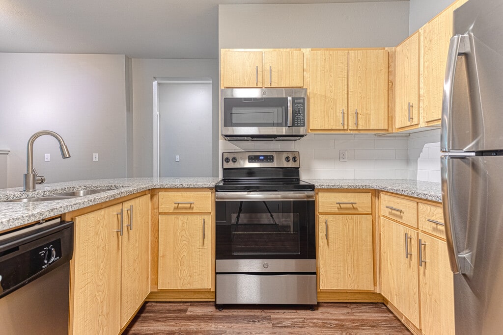 Experience Nexus Apartments at Orenco Station, a premier apartment community located in Hillsboro, in the heart of Orenco Station District, with ample on-site retail and only a few steps away from the Orenco MAX light rail station. Choose from air-conditioned and modern one-, two- and three-bedroom apartments with spacious layouts featuring upgraded premium finishes including hardwood-style flooring, granite countertops with subway tile backsplash, stainless steel appliances and modern lighting and plumbing fixtures throughout. Enjoy resort-style amenities such as our private resident park and sparkling swimming pool. We are a pet-friendly community and offer garage parking and carports. Our premier location is just a 25 minute drive to downtown Portland, a 15 minute walk to Intel® and an even shorter walk to the area's shopping and dining