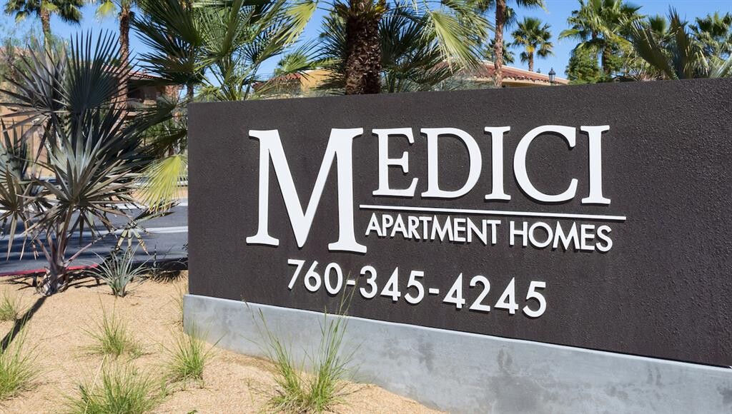 Apartments in Bermuda Dunes, CA Welcome to Medici Apartment Homes, your escape from the daily grind! Nestled in Bermuda Dunes, our apartments give you the peace and quiet of the suburban setting, all while opening the door to a luxurious living experience. Our beautifully designed one and two-bedroom homes are paired with resort-style amenities that will charm you from the moment you step foot onto our property. Your life here will be incomparably sweet.Located next to Coachella Valley, our apartments in Bermuda Dunes, CA, combine the looks of a seaside resort with the ambiance of an inviting home. You'll fall in love with the shimmering swimming pool featuring a hot tub and a cabana lounge, the stylish recreation room, the modern clubhouse, and the upgraded health studio with free weights. We also offer high-speed internet, off-street parking, laundry facilities, and concierge services to ensure all your needs are met. As for our one and two-bedroom residences, they take your day-to-day to the next level. All of them feature air conditioners, stackable washer and dryer, efficient kitchen appliances, large pantries, granite countertops, high ceilings, and so much more.Our apartments for rent in Bermuda Dunes, CA, are located off the I-10 freeway. That means youll live a stones throw away from Agua Caliente Resort Casino Spa, Indian Wells Tennis Gardens, and Coachella Valley Music Art Festival, as well as close to plenty of diners and shops. Across the street is the classic Bermuda Dunes Country Club, where you can enjoy a round of golf in the beautiful desert weather.Browse through our gallery, then make sure to give us a call to schedule your personal tour!