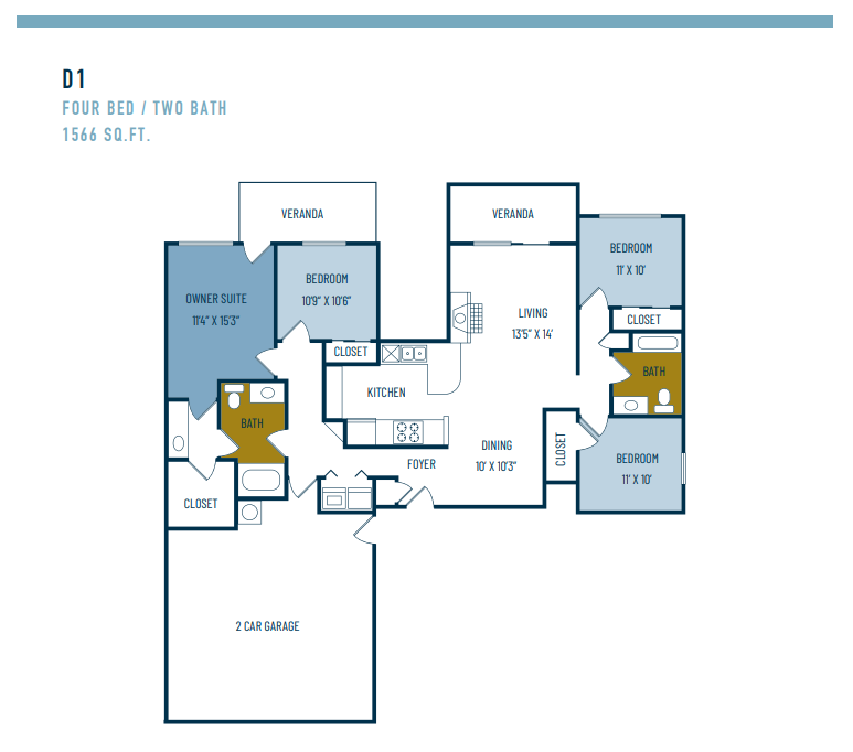 The Club at Stonegate offers 1 to 4 Bedroom apartments starting from $1,140 and having 675–1,566 sq ft. Here is the current pricing and availability: