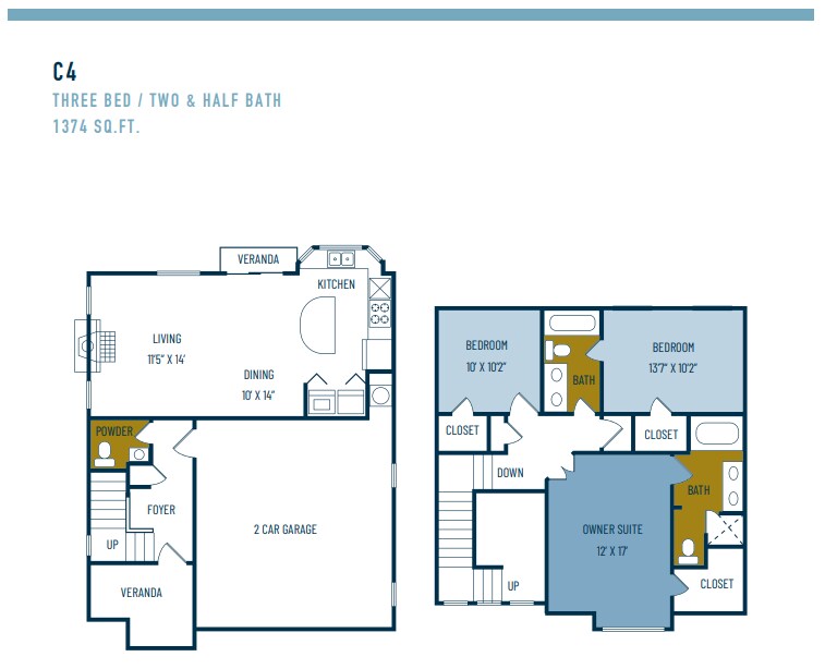 Apartment Model: Two Bedroom / One Full and Two Bath TownhomeFrom $1,8802 Bedroom, 2.5 Bath, 1372 sq ftAvailable Now![]()