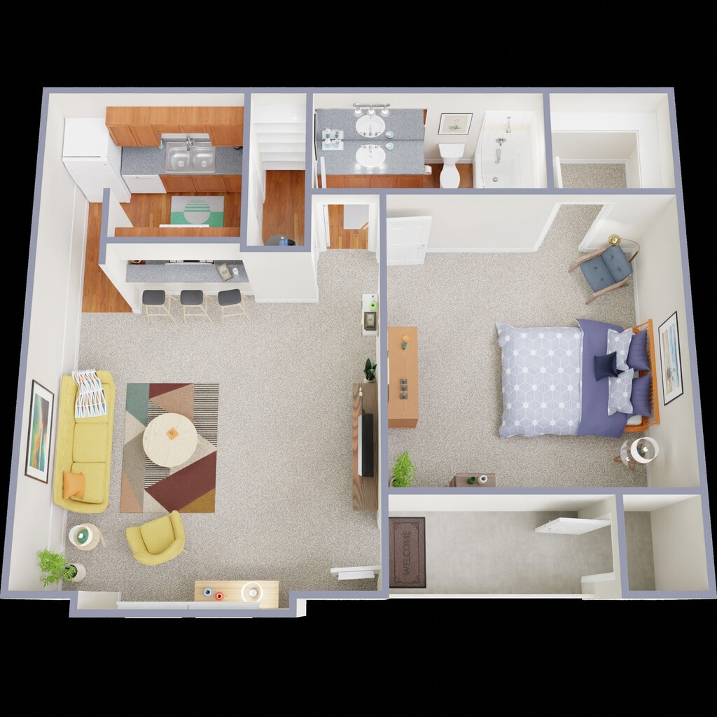 Apartment Model: 1 Bedroom/ 1 Bathroom Silver$8751 Bedroom, 1 Bath, 616 sq ftAvailable November 30, 2025![]()
