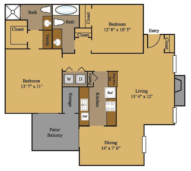 2 Beds, 2 Baths, 913 sq ftAvailable NowModel Gallery