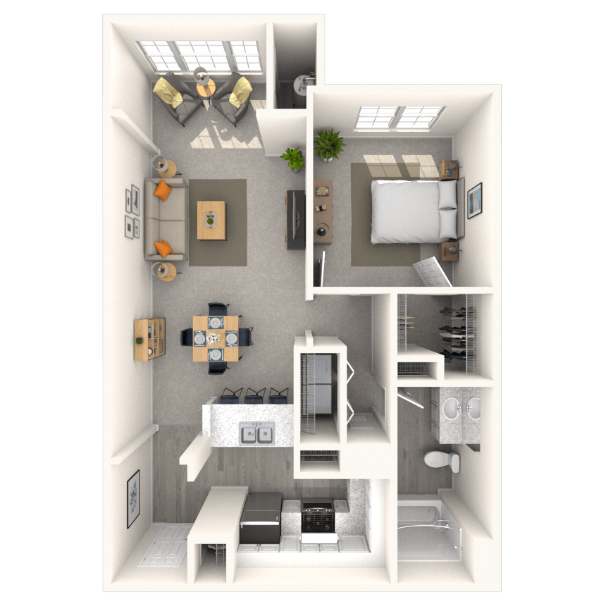 Apartment Model: Traditional 1x1 709-976 SFFrom $1,5801 Bedroom, 1 Bath, 709-968 sq ftAvailable Now![]()