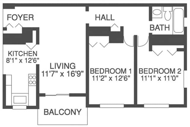Apartment Model: 2x1 996 River ForestFrom $8002 Bedroom, 1 Bath, 996 sq ftAvailable Now2x1 996 River Forest - Floorplan 1 2x1 1125 River Forest