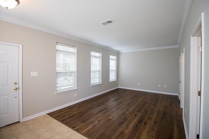 September 23, 2015Was super excited they would take our 60lb dog in the townhouses. Move in was smooth. One door did not shut easily, maintenance fixed it in less than 24 hrs. Cannot hear the neighbors at all. One has a small army of children, the other a large dog. No noise. Community watch drives around at night.Review from Apartments.com