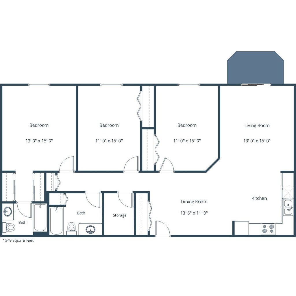 3 Beds, 2 Baths, 1349 sq ftModel Gallery