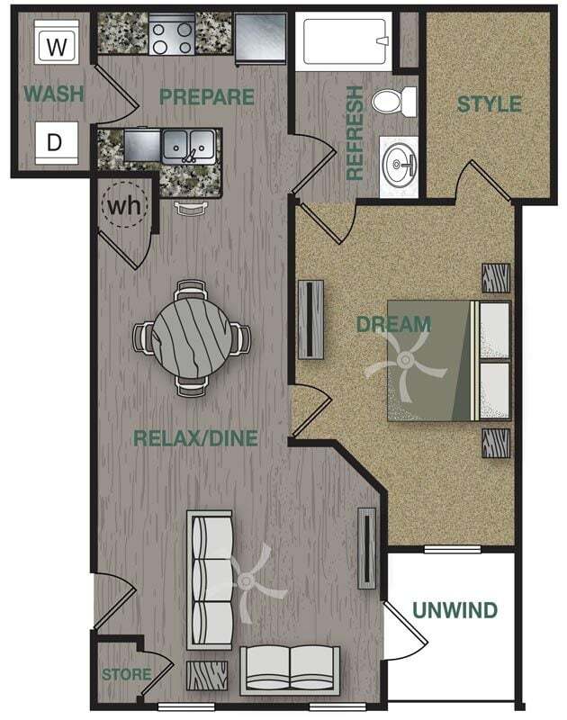Apartment Model: The Timberlake - A2UG1 Bedroom, 1 Bath, 936 sq ftAvailable Now![]()