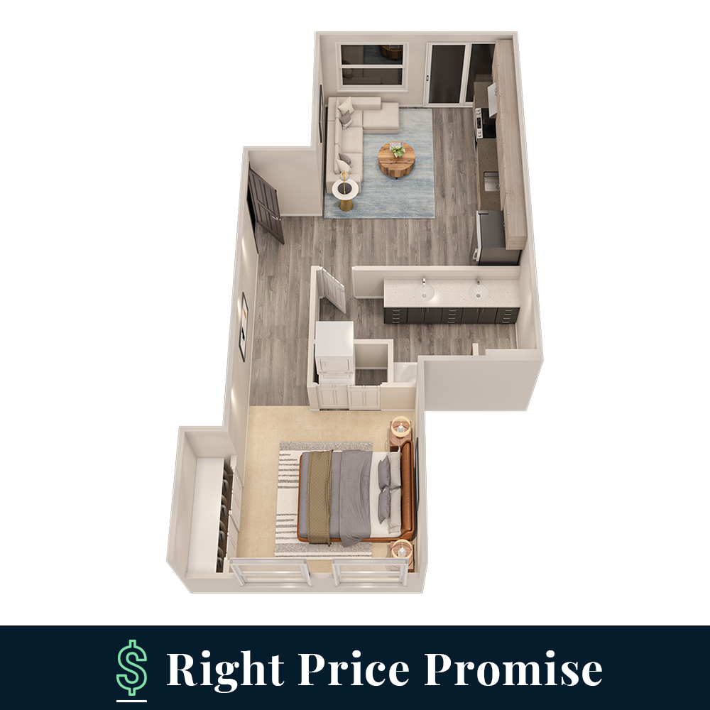 Studio, 1 Bath, 642 sq ftLargest StudioThis is the largest Studio at this PropertyModel Gallery