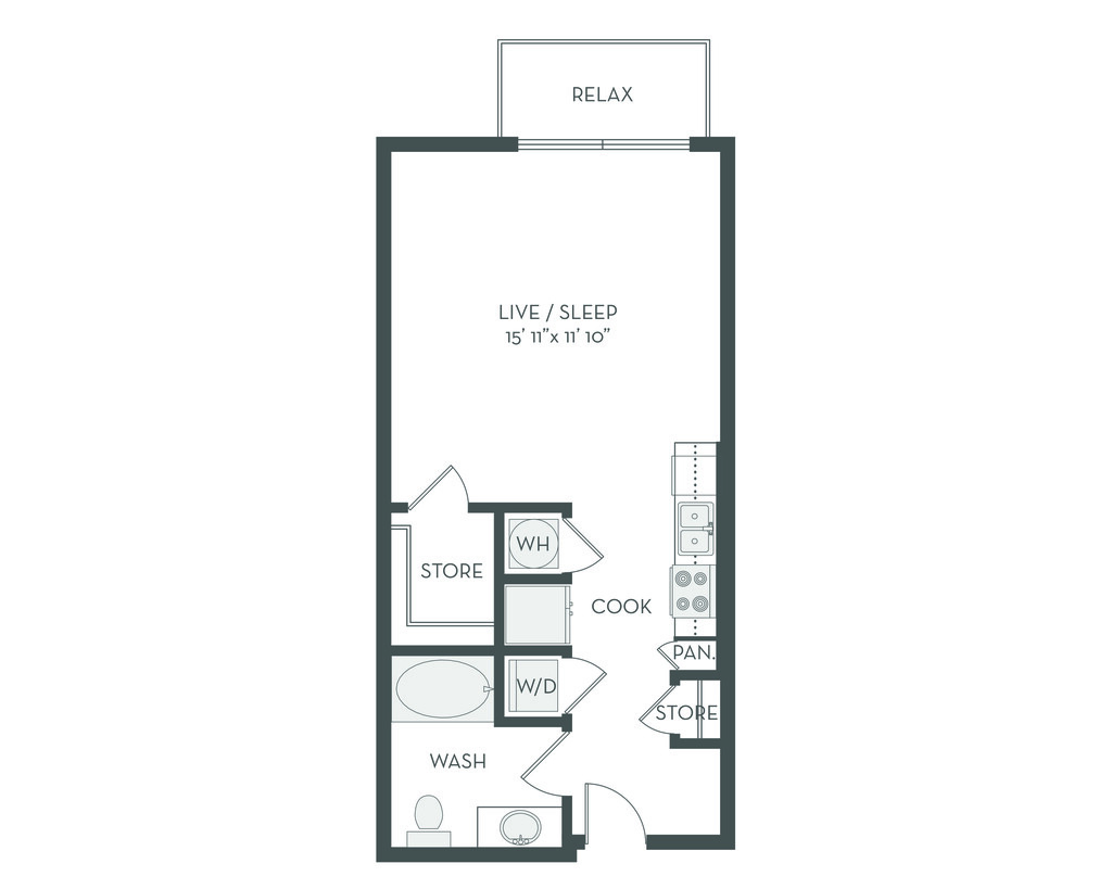 Apartment Model: S1$1,316Studio, 1 Bath, 543 sq ftUnavailableFloor plans are artist's rendering. All dimensions are approximate. Actual product and specifications may vary in dimension or detail. Not all features are available in every rental home. Prices and availability are subject to change. Base rent is based on monthly frequency. Additional fees may apply, such as but not limited to package delivery, trash, water, amenities, etc. Deposits vary. Please see a representative for details.
