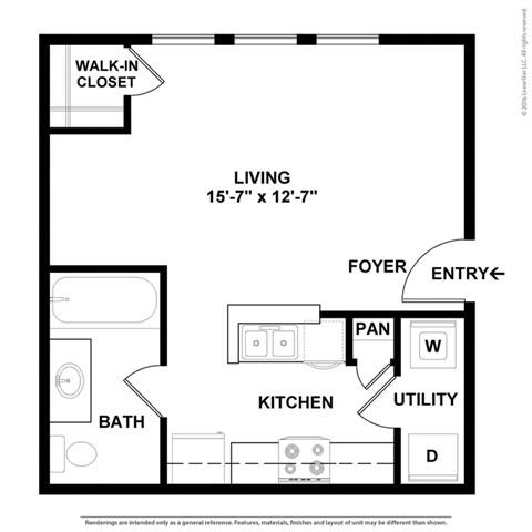 Studio, 1 Bath, 430 sq ftAvailable NowModel Gallery