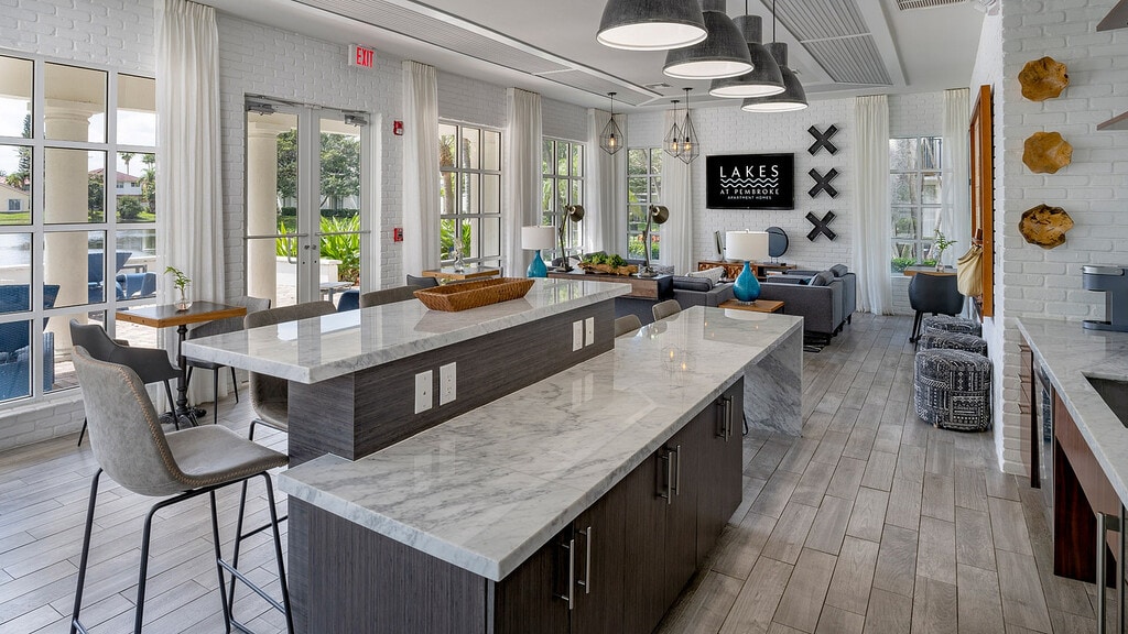 We are now welcoming in-person and virtual tours by appointment. Please contact us today to schedule your appointment. Let Lakes at Pembroke surround you with lush tropical landscaping. We provide individual entrances with serene water views. Enjoy our elegant clubhouse, take a dip in one of our pools, or work off that stressful day in our fitness center. Lakes at Pembroke gives you what you need to live the way you want. Located close to Dade and Broward counties, we offer easy access to countless shopping, fine dining and unbeatable entertainment. Let our leasing professionals at Lakes at Pembroke help you find your new home.