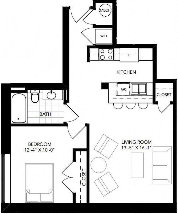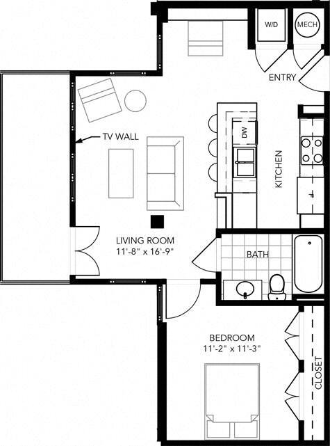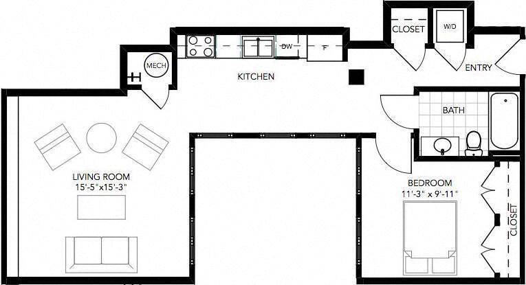 1 Bed, 1 Bath, 597-681 sq ftAvailable NowModel Gallery