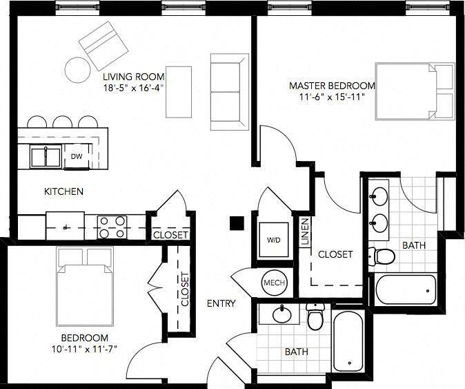 Apartment Model: The CanalFrom $1,5411 Bedroom, 1 Bath, 550-560 sq ftAvailable January 29, 2026![]()
