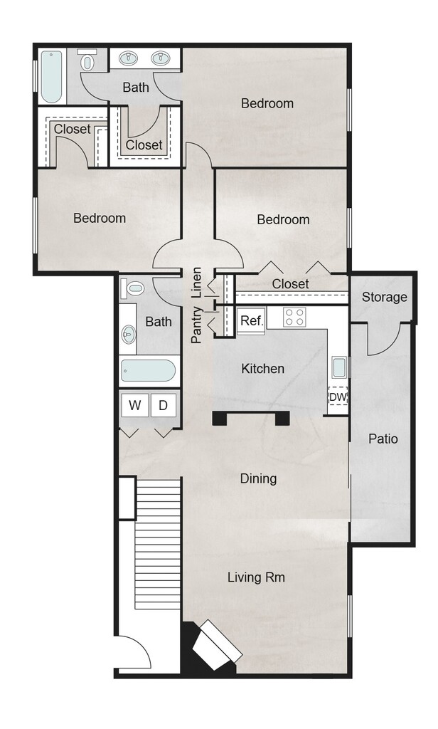 1 Bed, 1 Bath, 1056 sq ftAvailable NowLargest 1 BedroomThis is the largest 1 Bedroom at this PropertyModel Gallery