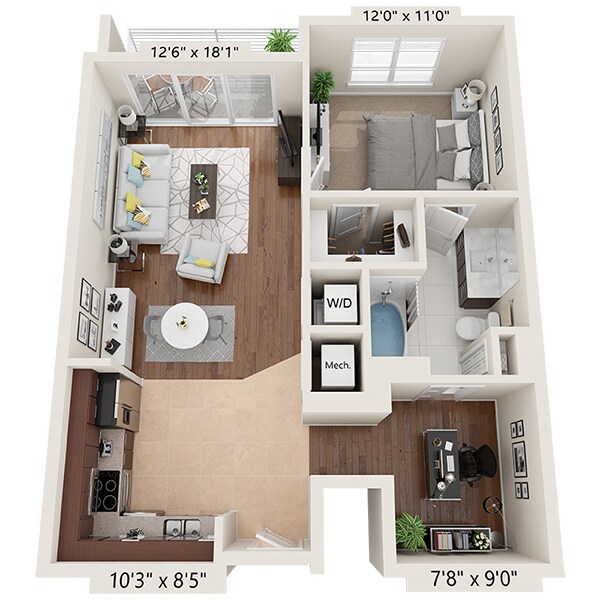 Studio, 1 Bath, 723 sq ftAvailable January 10, 2026Model Gallery