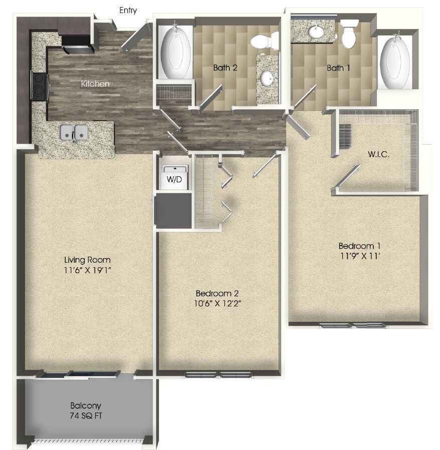 A2 - Floorplan 1 Apartment Unit: 3402Apartment Model: A2$1,7301 Bedroom, 1 Bath, 713 sq ftAvailable January 3, 20262 Bedrooms