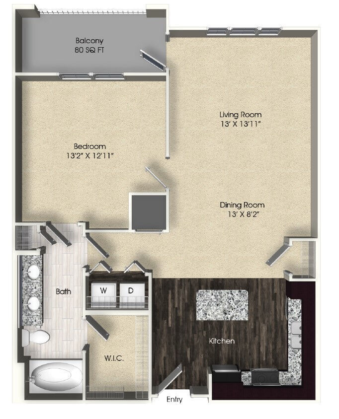 1 Bed, 1 Bath, 713 sq ftAvailable NowModel Gallery