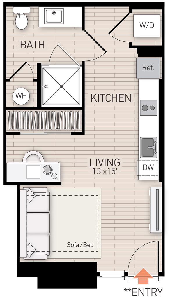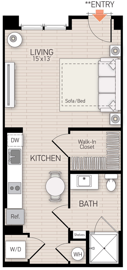 Studio, 1 Bath, 513 sq ftAvailable NowModel Gallery