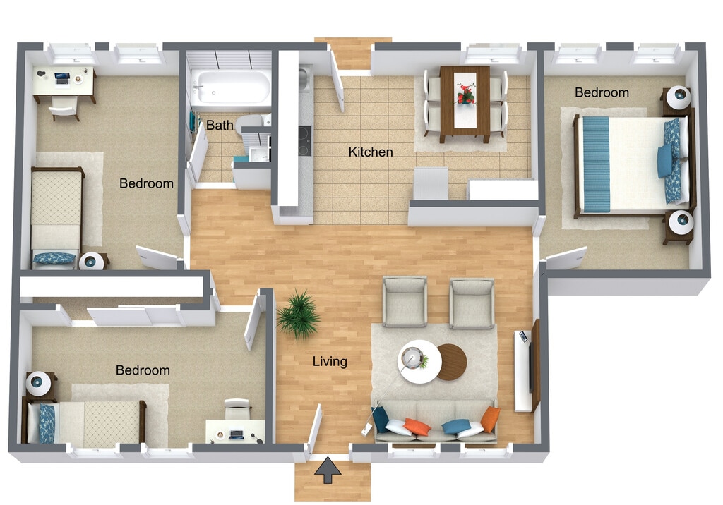 3 Beds, 1 Bath, 718 sq ftAvailable NowModel Gallery